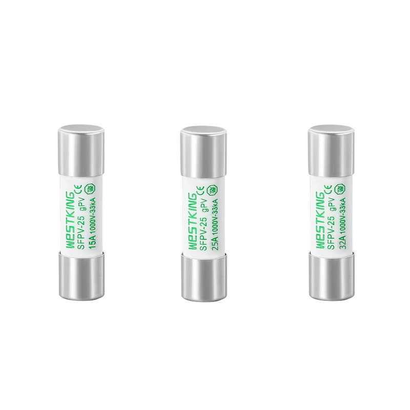 Westkingov model SFPV-25 je bil izdelan z mislijo na fotovoltaične sistemese pojavi kot namensko izdelana serija PV varovalk, zasnovana za zagotavljanje varnosti fotovoltaičnih nastavitev. Ta serija varovalk s svojo prefinjeno zasnovo ponuja izjemno odpornost proti temperaturnim nihanjem in pogostim menjavam toka, s čimer spodbuja podaljšano življenjsko dobo sistema.